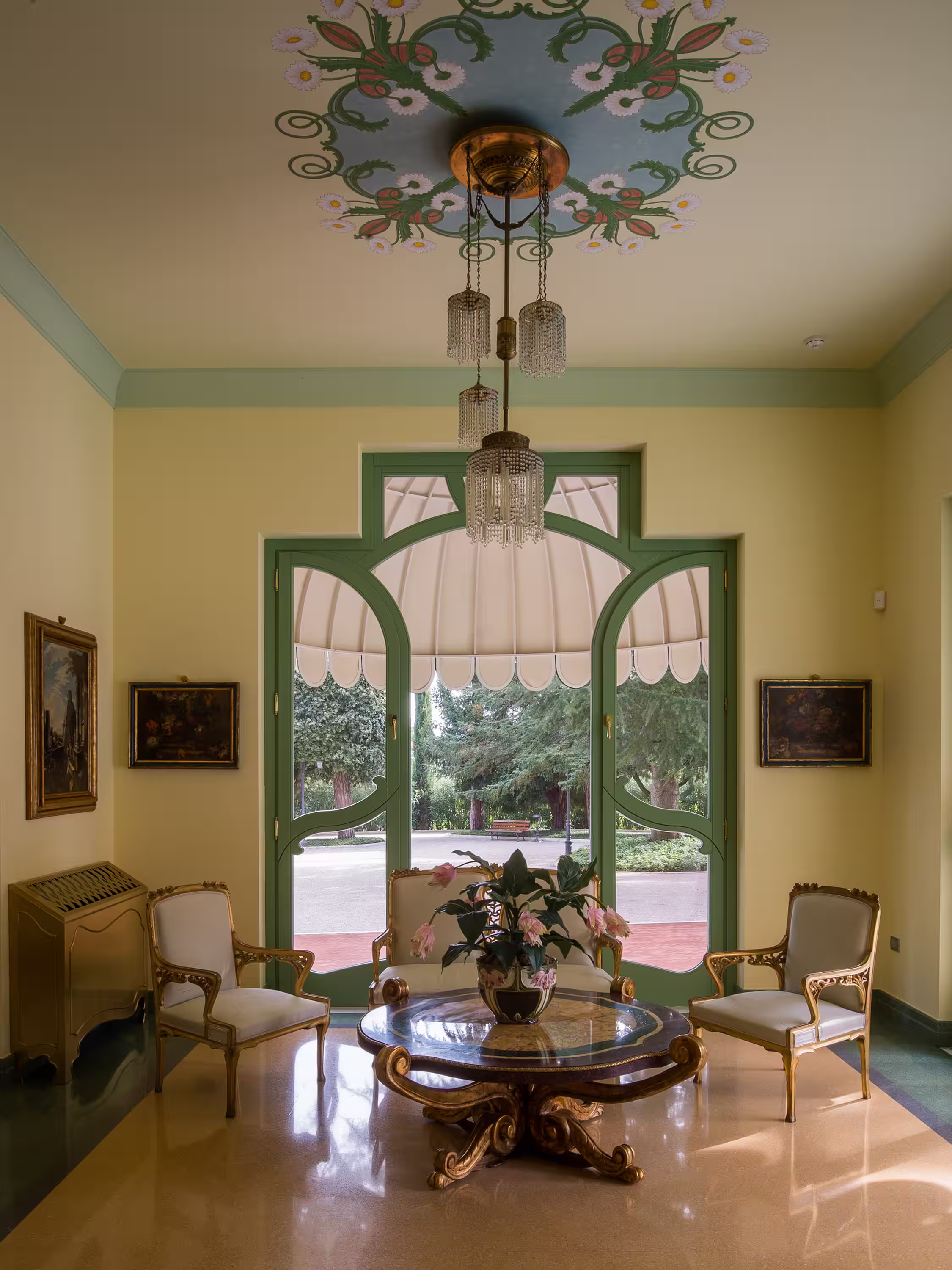 Tra arredi preziosi, atmosfere Liberty e scorci sul verde, le sale della villa regalano un senso di accoglienza immediata. Ognuna con la propria anima, sono luoghi dove cura dei dettagli e bellezza artistica si intrecciano.